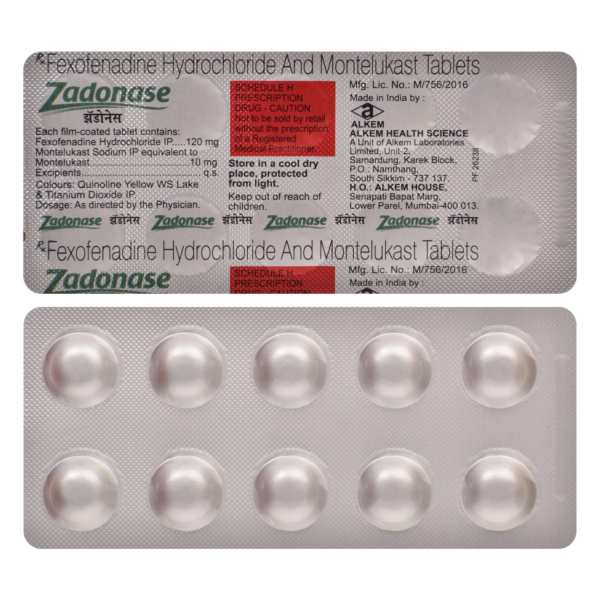 Zadonase Tablet is a combination medicine used to relieve allergy-related symptoms such as a runny or blocked nose, sneezing, watery eyes, and nasal congestion.
