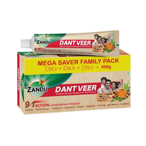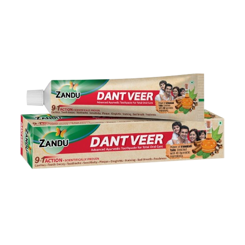 Zandu Dantveer Ayurvedic Toothpaste is a complete oral care solution powered by Irimedadi Taila, a 5,000-year-old Ayurvedic oil blend, and enriched with 40 potent Ayurvedic ingredients. Unlike ordinary toothpastes that only address one or two issues, Dantveer provides 9-in-1 protection against cavities, tooth decay, toothache, bad breath, staining, sensitivity, plaque, gum problems, and loss of freshness.
