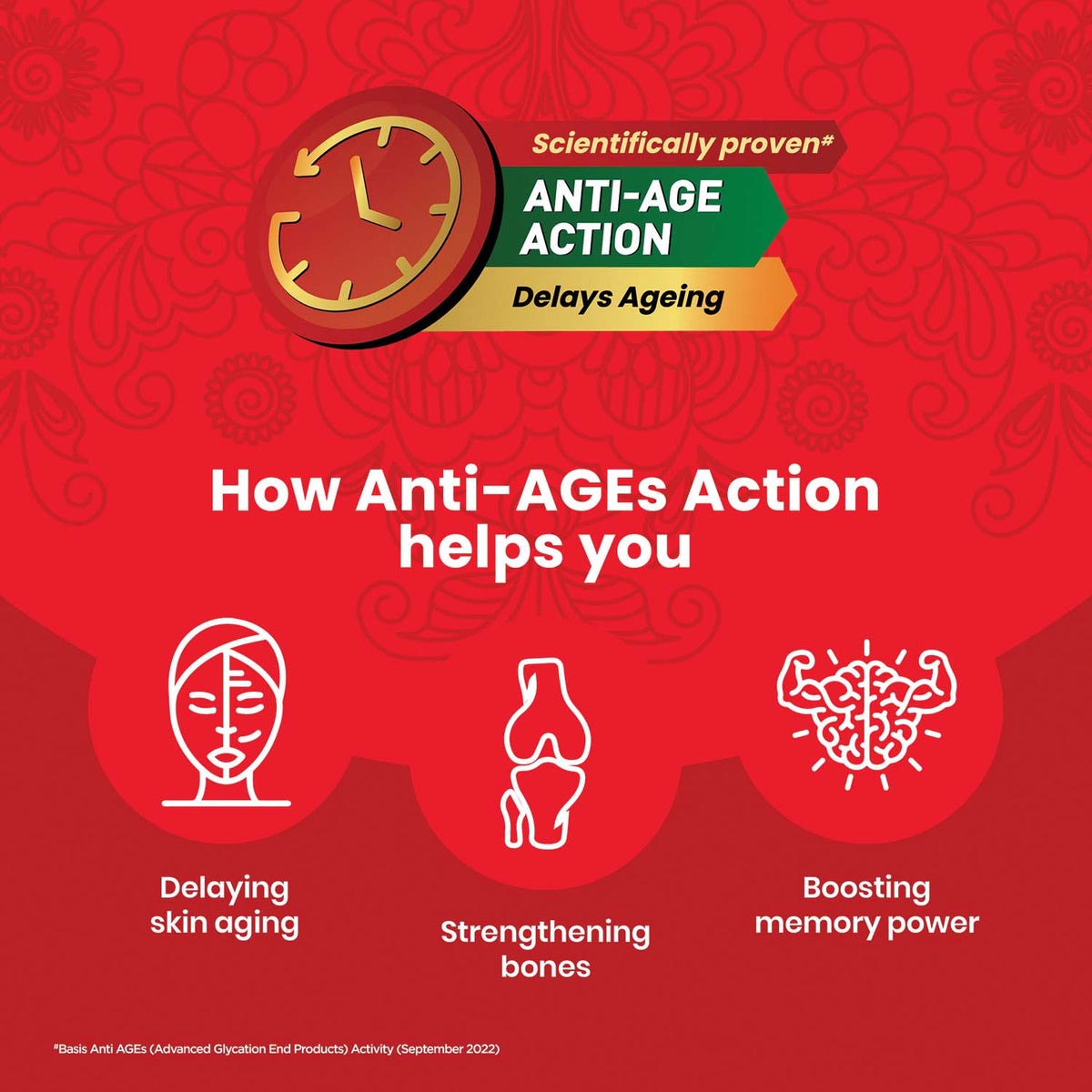 Developed by Zandu Advanced Ayurvedic Research Centre (ZAARC), this scientifically backed formulation prevents the formation of AGEs (Advanced Glycation End Products), which are responsible for accelerated ageing. The result is a comprehensive tonic that not only revitalizes the body but also sharpens the mind and promotes restful sleep.
