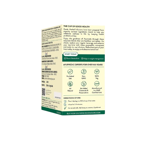 Zandu Lemon & Honey Green Tea is a revitalizing Ayurvedic blend created to support a healthy and energetic lifestyle. Crafted with 100% vegetarian and natural ingredients, this refreshing tea combines the zesty flavor of lemon with the natural sweetness of honey to offer a delightful, healthful drink. Rich in antioxidants and catechins, it promotes metabolism, aids in weight management, and helps combat oxidative stress. With every sip, experience a calming, energizing effect while nourishing your body and uplifting your mood—ideal for daily wellness.