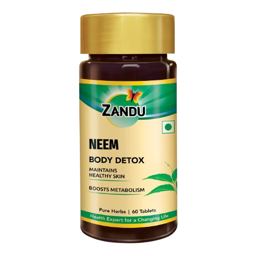 Zandu Neem Tablets are formulated with 100% pure neem extract to deliver powerful Ayurvedic benefits for skin, immunity, and overall wellness. Known as the “Miracle Herb” in Ayurveda, neem is rich in antibacterial, antifungal, and anti-inflammatory properties. These tablets purify the blood, remove toxins, and help maintain healthy skin by reducing acne, blemishes, and skin irritations. Additionally, neem supports healthy metabolism, boosts immunity, and helps maintain healthy blood sugar levels naturally.