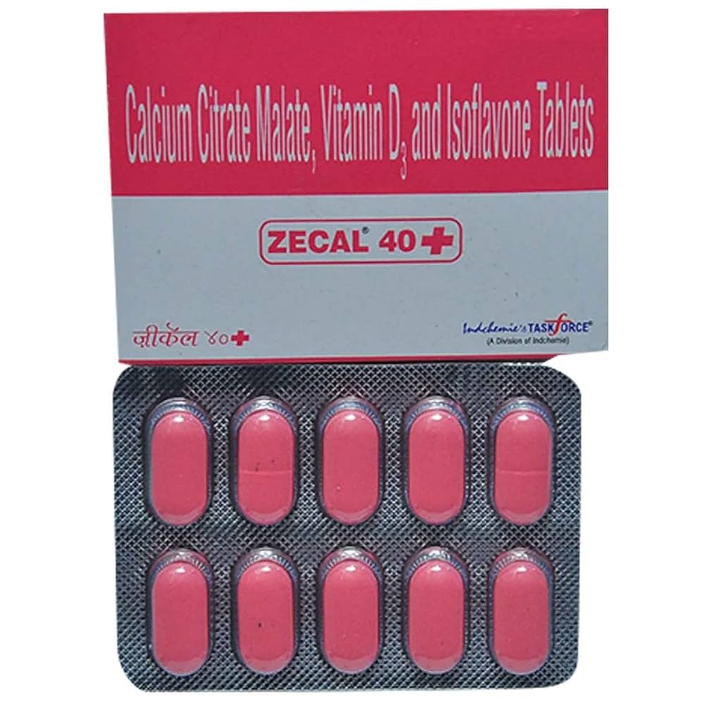 Zecal 40 Plus Tablet, Zecal 40 Plus for Bone Health, Zecal 40 Plus Calcium & D3 Supplement, Calcium Vitamin D3 and Isoflavones Tablets, Osteoporosis Support Supplement, Rickets and Bone Loss Treatment, Bone Strength Tablets Zecal 40 Plus