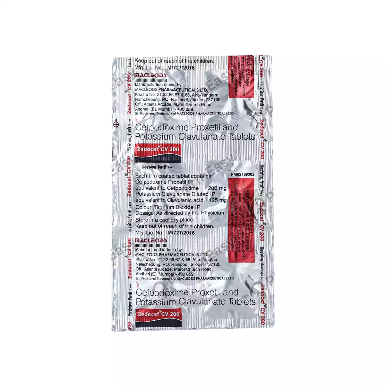 Zedocef CV 200 Tablet is a combination antibiotic formulated to provide enhanced antibacterial action against a broad spectrum of bacterial infections. It combines a cephalosporin with a beta-lactamase inhibitor to combat bacteria that produce enzymes capable of resisting standard antibiotics. This makes Zedocef CV 200 highly effective for treating respiratory tract infections, urinary tract infections, skin and soft tissue infections, and other bacterial illnesses where resistant strains are suspected. Administered under medical supervision, it helps inhibit bacterial growth, reduce infection severity, and promote faster recovery. The tablet form ensures accurate dosing and is convenient for adults and older children capable of swallowing tablets. Regular use as prescribed supports effective infection management and overall well-being.