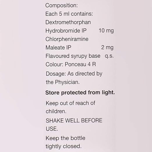 Zerotuss-D Syrup Sugar Free contains Dextromethorphan Hydrobromide and Chlorpheniramine Maleate. Dextromethorphan acts on the cough center in the brain to suppress the urge to cough, while Chlorpheniramine blocks the action of histamine — a chemical responsible for allergic reactions. Together, they control coughing, reduce irritation, and help restore comfort.