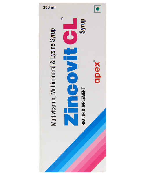 Zincovit CL Syrup is a health supplement designed to provide a blend of essential vitamins, minerals, and Lysine to support overall well-being. It helps supply the body with necessary nutrients, promoting healthy bones, teeth, skin, and hair. The syrup also supports the proper function of key organs, aids in red blood cell formation, and contributes to a stronger immune system, helping maintain balanced health.