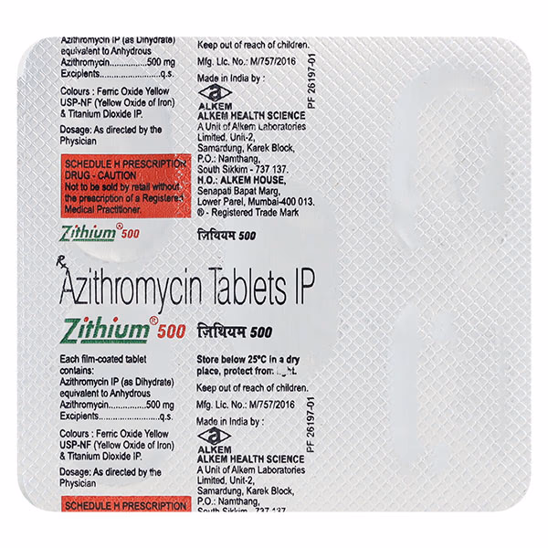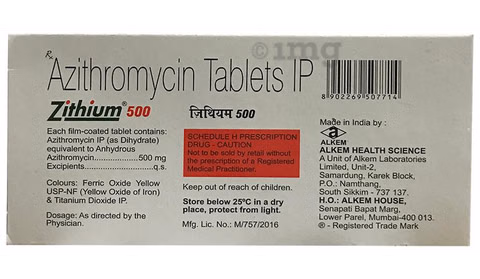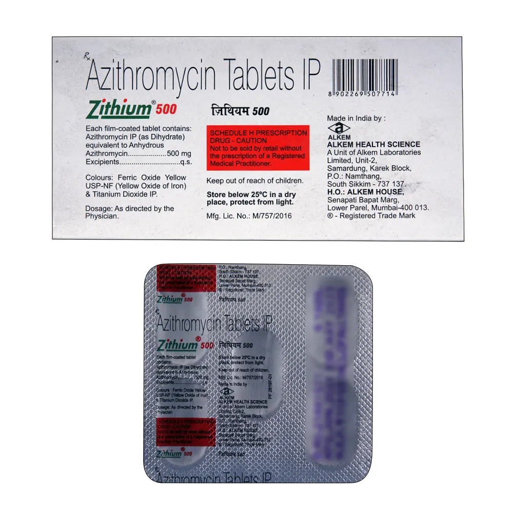 Zithium 500 Tablet is an antibiotic medicine used for the treatment of bacterial infections affecting the respiratory tract, ear, nose, throat, lungs, skin, and eyes. It is also effective against typhoid fever and certain sexually transmitted diseases, including gonorrhea. This medicine can be used in both adults and children.