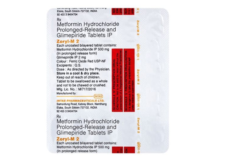 Keywords: Zoryl-M 2 Tablet PR, Zoryl-M Tablet, Glimepiride Metformin Tablet, Type 2 Diabetes Medication, Anti-diabetic Combination Tablet